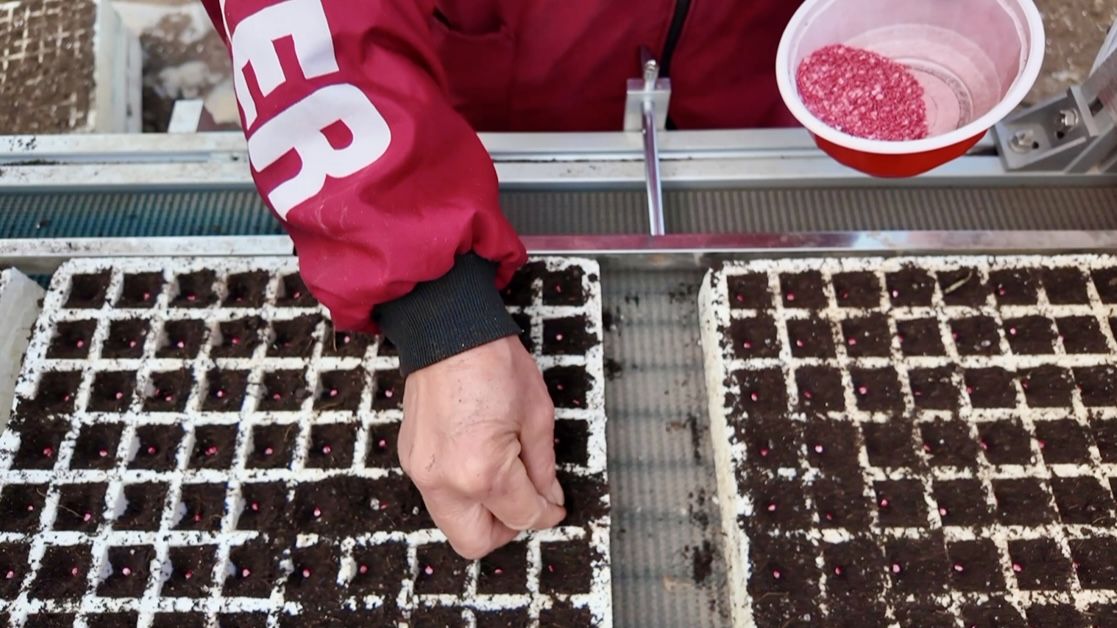 自3月1日育苗工作启动以来,该基地采用“人工+机械”高效育苗模式,自动化精量播种机每小时可完成1200余盘播种任务,效率较传统人工提升近10倍,出苗率稳定在92%以上,有效解决了传统育苗效率低、出苗不均等难题。截至目前,基地已完成的育苗量可满足5000余亩辣椒种植需求。