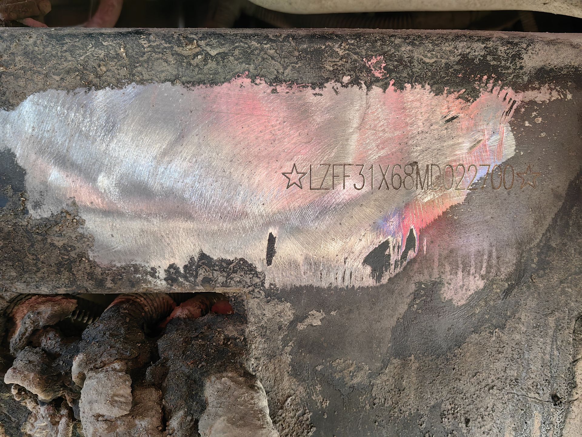 在审核宜昌某机动车检测站提交的待审核车辆资料时,一辆号牌为渝DJ***的重型自卸货车引起了宜昌车管所远程审核科科长朱贤文的警觉。审核中发现,该车车架号区域存在明显打磨、篡改痕迹,外观与正规刻印标识差异明显,不符合机动车查验相关标准规范。凭借多年车管审核工作经验,民警当即判定该车存在重大违规嫌疑,随即启动重点核查流程,对车辆运行轨迹、活动范围进行全面溯源核对。