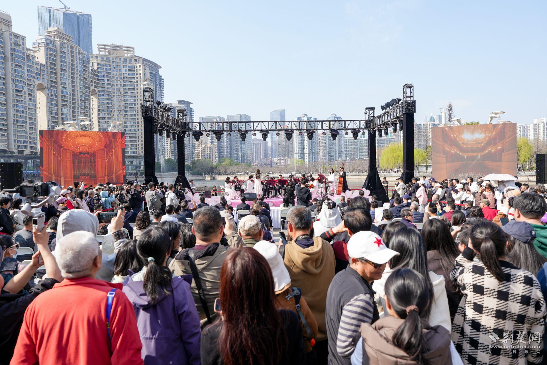 启动仪式当天,西北湖广场樱花初绽。伴随着武汉爱乐乐团悠扬的乐声,2026江汉区赏樱艺术季正式开启。现场不仅能围观陈铭有趣的春日漫谈,还能看到上海歌舞团艺术总监、国家一级演员朱洁静将带来群舞演出,在樱花掩映间呈现一场艺术盛宴。