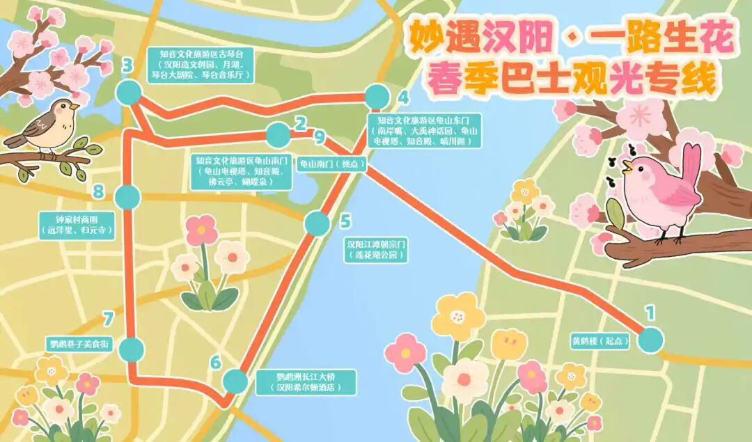 △“妙遇汉阳·一路生花”春季巴士观光专线线路图。