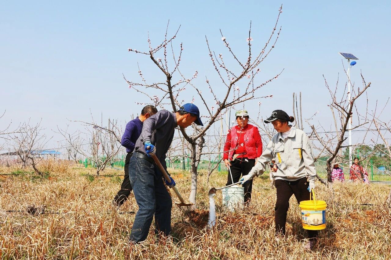 春风拂过,桃花摇曳生姿。施肥的队伍在花海中穿梭,一锄一锄,一瓢一瓢,把春天的希望埋进土里。大家信心满满:“底肥足,苗才壮。今年花芽饱满,管护到位,只要后续天气顺,肯定是个丰收年。”待到盛夏时节,千亩桃园将硕果累累,一颗颗饱满的水蜜桃将带着刘砦村的甜蜜,走向江浙沪的商超,走上千家万户的果盘。