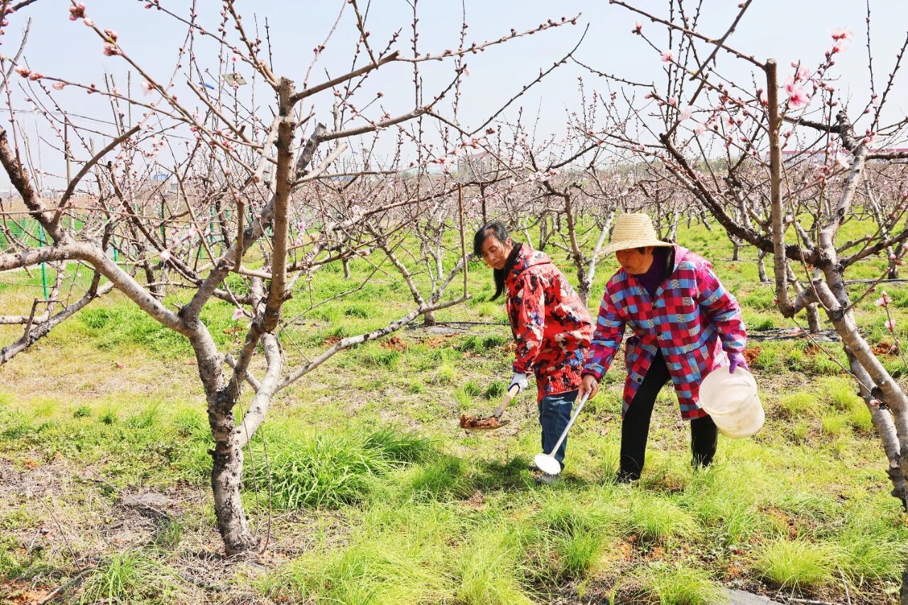 走进千亩桃园,淡淡的桃花香混着泥土的气息扑面而来。桃树下,村民们三五成群,分工协作。负责挖坑的挥动锄头,在树冠投影下方挖出整齐的施肥穴;负责添肥的紧随其后,将一瓢瓢配比好的有机肥精准施入,再覆土填平,动作娴熟流畅。