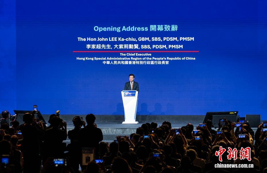 图为香港特区行政长官李家超在“国际人才论坛”开幕式上作开幕致辞。中新网记者 侯宇 摄