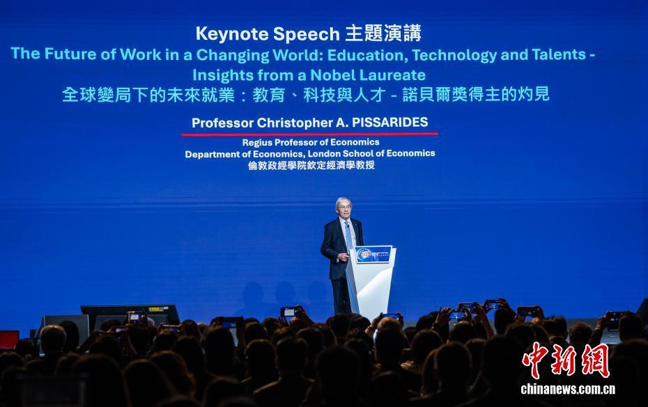 图为2010年诺贝尔经济学奖得主、伦敦政治经济学院经济学教授克里斯托弗·皮萨里德斯(ChristopherPissarides)在“国际人才论坛”上作“全球变局下的未来就业:教育、科技与人才”主题演讲。中新网记者 侯宇 摄