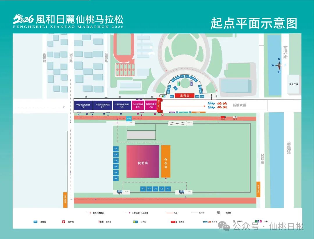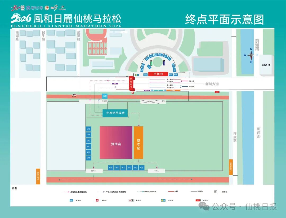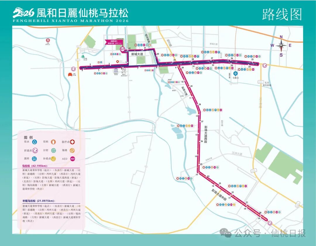 跑一场步、游一座城。值得一提的是,今年仙桃市在赛道打造、赛事体验等多方面优化升级,全面彰显“平坦有实力、风景有魅力、人文有底蕴、服务有温度”的城市特色。聚焦赛道细节,高标准检修巩固全线路面,打造更具安全感的竞速坦途;全面优化赛道引导体系,增补清晰醒目的指示标识和里程牌,增设极具辨识度的地标指引,实现“零障碍竞速”。优化赛事体验,在历届成功办赛基础上,升级交通接驳服务,增设“仙马”主题公交专线,在主要交通枢纽设立“仙马”速通驿站,提供领物点直达专车、高铁送站、站厅引导等暖心服务,实现选手从抵仙、参赛到返程的全流程出行保障。同时还将融入更多沉浸式、参与式互动环节,推动赛道氛围品质提升。本届马拉松参赛总规模为12000人,共设置马拉松和半程马拉松两个竞赛项目,参赛人员分别为3000人、9000人。赛事路线上沿用往届赛道,起点、终点均设置在新城大道荣怀学校门前。马拉松路线途经新城大道、前通路、沔州大道、彭场大道、钱沟南路,到达终点;半程马拉松路线途经新城大道、前通路、沔州大道、钱沟南路,到达终点。