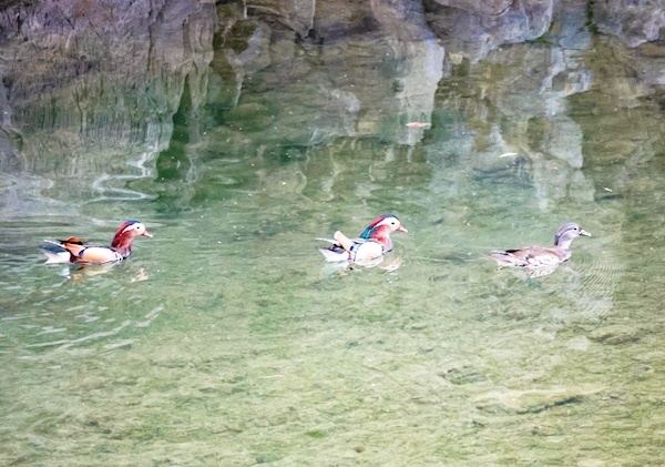 国家二级重点保护野生动物鸳鸯在水中嬉戏。