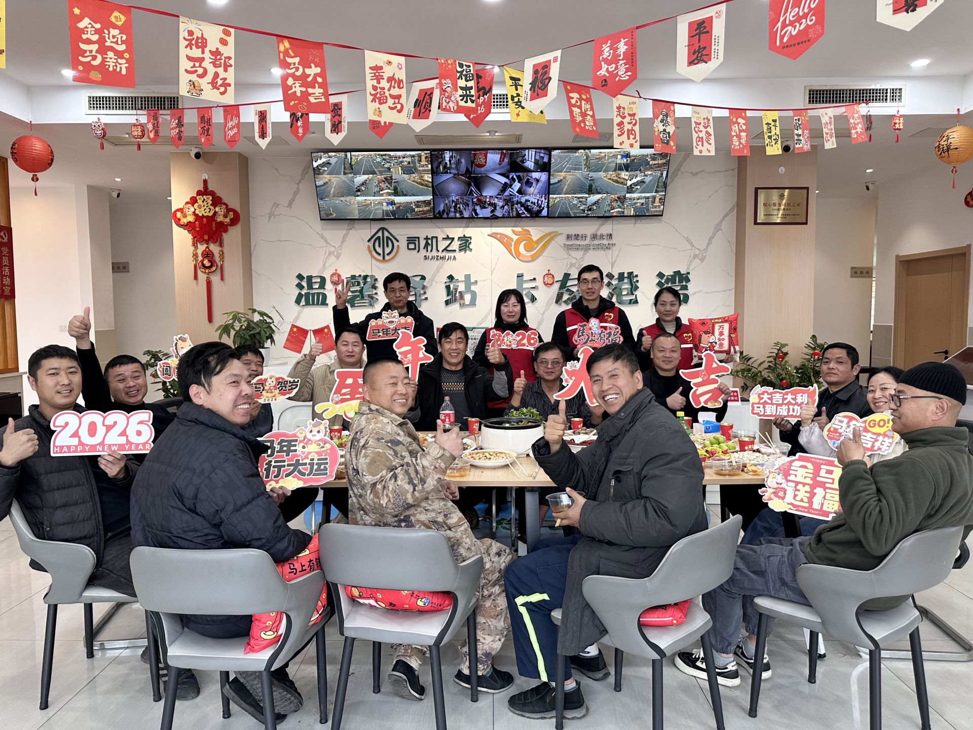 服务区志愿者和司乘朋友在司机之家吃年饭