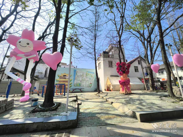 西厂口社区紧扣汉马赛事契机,精心打造赛事沿线靓丽风景线。从后宰门到花香西厂街巷,社区因地制宜布置系列景观小品,软萌的樱花人偶憨态可掬地“坐”在巷口,浪漫的粉色爱心悬挂装置随风轻摇,错落有致的花箱绿植点缀其间,墙上的黄鹤楼手绘与街区地图墙绘相映成趣。一步一景,处处成画。这些精心布置的景观装置不仅装点了春日街巷,也为市民游客提供了感受古城文化、记录美好瞬间的公共空间。