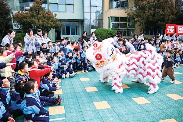 3月13日,汉江师范学院体育学院舞龙舞狮队来到桐华幼儿园,为该园师生带来了一场别开生面的传统文化体验课。精彩的舞狮表演赢得孩子们阵阵欢呼,表演结束后,队员们引导孩子们有序上前触摸狮头、拥抱狮身,让孩子们在沉浸式互动中感受传统非遗的独特魅力。此次活动将志愿服务精神与传统文化传承有机结合,通过寓教于乐的方式,有效激发孩子们对中华优秀传统文化的热爱,引导他们在强健体魄的同时增强文化自信。记者刘成臣通讯员罗优优摄