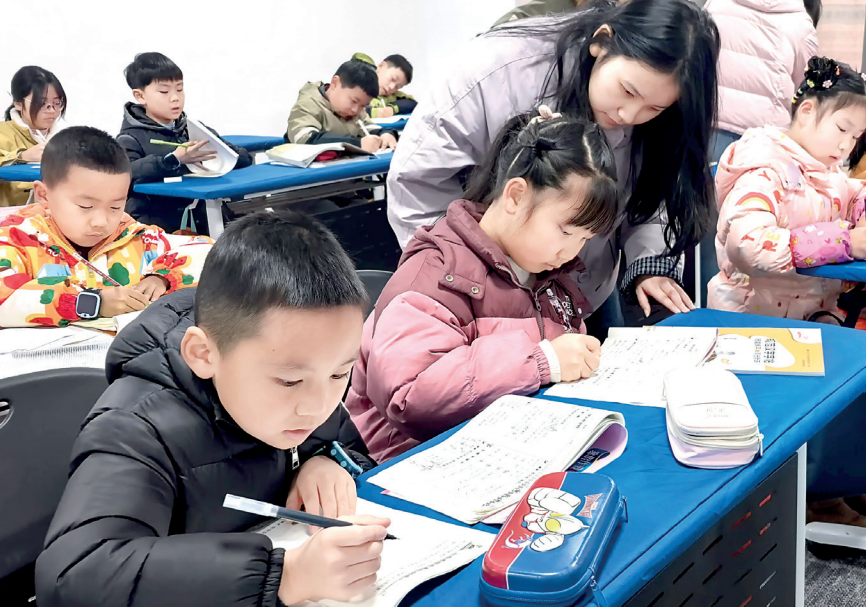 在“爱上宜昌”新业态新就业群体党群服务中心,志愿者为新就业群体子女提供托管服务。(西陵区委社会工作部供图)