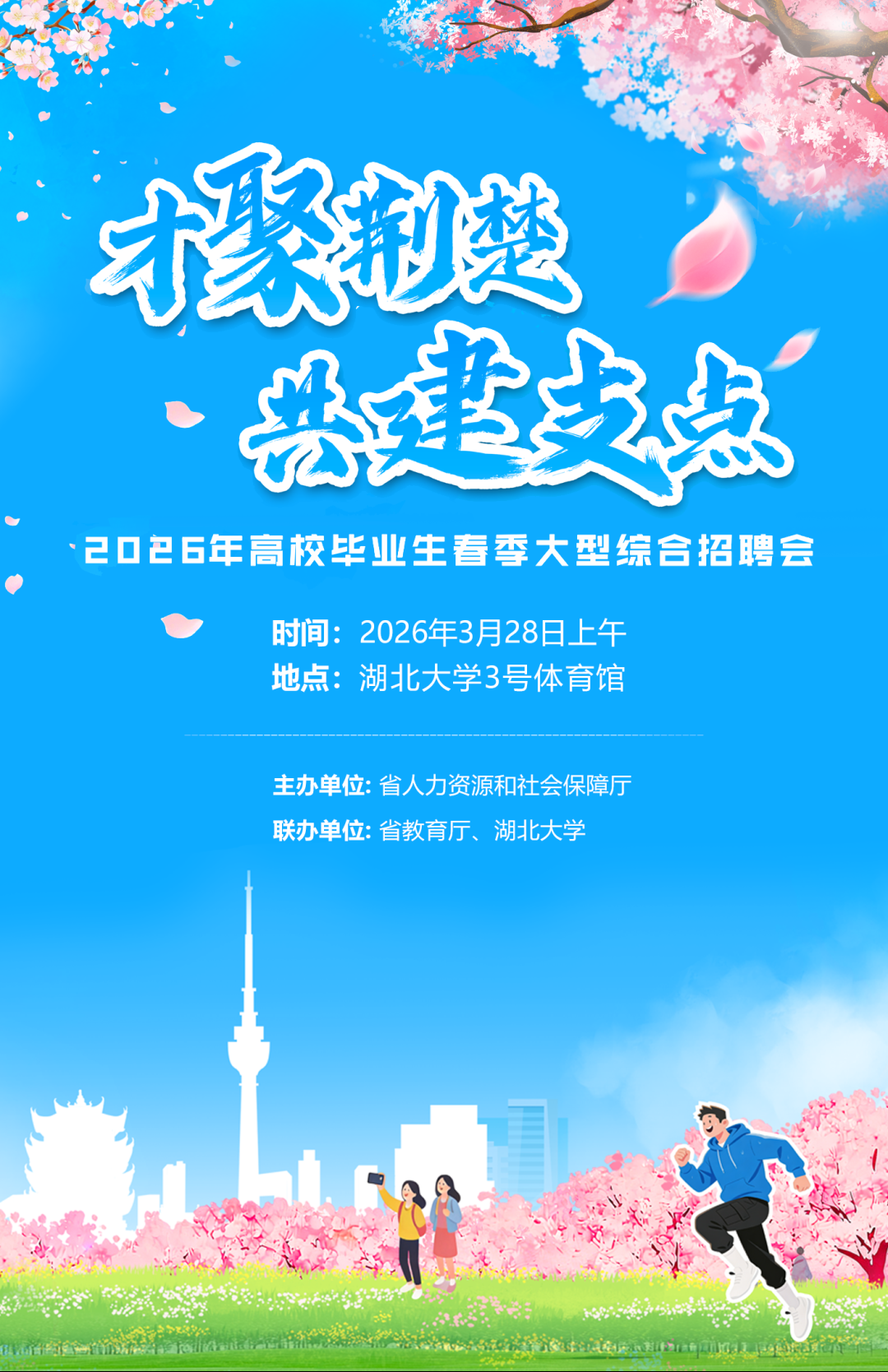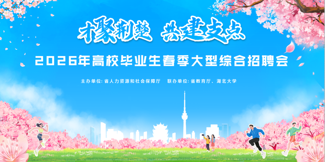 为落实省委、省政府促进高校毕业生就业创业工作要求,坚持投资于物与投资于人紧密结合,纵深推进“才聚荆楚”工程,全面启动2026年“百县进百校联万企”就业促进专项行动,“才聚荆楚·共建支点”高校毕业生春季大型综合招聘会将于3月28日上午登陆湖北大学。