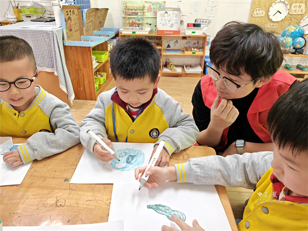 志愿者与小朋友开展互动教学。 通讯员供图