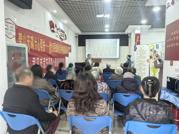 讲座现场,医院精神康复一科医生姜磊结合中老年群体身体特质与日常作息习惯,摒弃晦涩专业术语,用通俗易懂的语言,系统讲解睡眠周期、睡眠的核心价值,细致剖析失眠、睡眠呼吸暂停、早醒等常见问题的危害,让居民清晰认识到睡眠健康的重要性。