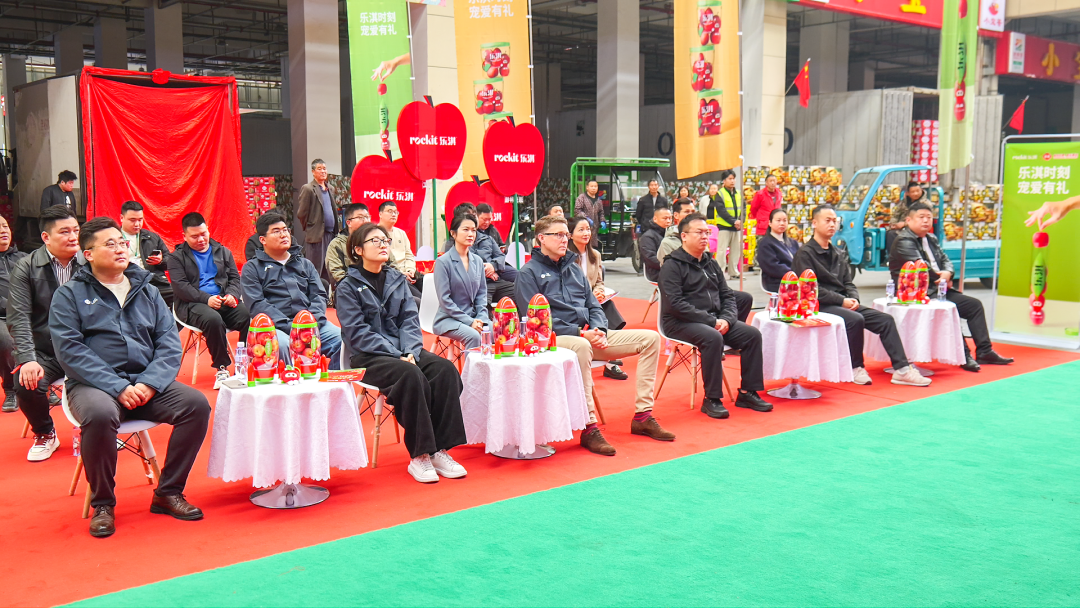 在热烈的掌声中,刘杰、Tom Lane、菀铭煜、姜涛等嘉宾共同为本次发布会剪彩。随后,众人移步至佳农档口前,共同开启乐淇火箭苹果货柜。