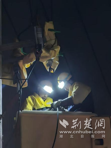 荆楚网(湖北日报网)讯(通讯员 高圣虹 李勇)3月27日子夜,荆州市沙市区观音垱镇何桥二组的田野间,应急照明灯火划破夜幕。国网荆州供电公司城区供电中心天诚分公司带电作业班的7名党员骨干,正奋战在电杆上,开展紧急带电抢修,全力守护村民用电无忧。