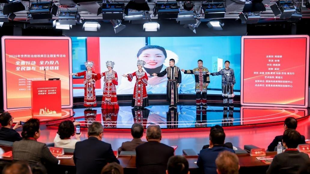 3月21日,在全国2026年“世界防治结核病日”主题宣传活动上,这首由宣恩县卫健局指导、县疾控中心改编的土家民歌《防痨六口茶》精彩亮相。清脆的嗓音、熟悉的旋律,伴着恩施土家族服饰的鲜艳色彩,将防痨知识唱进了在场每个人的心里,赢得全场的掌声。