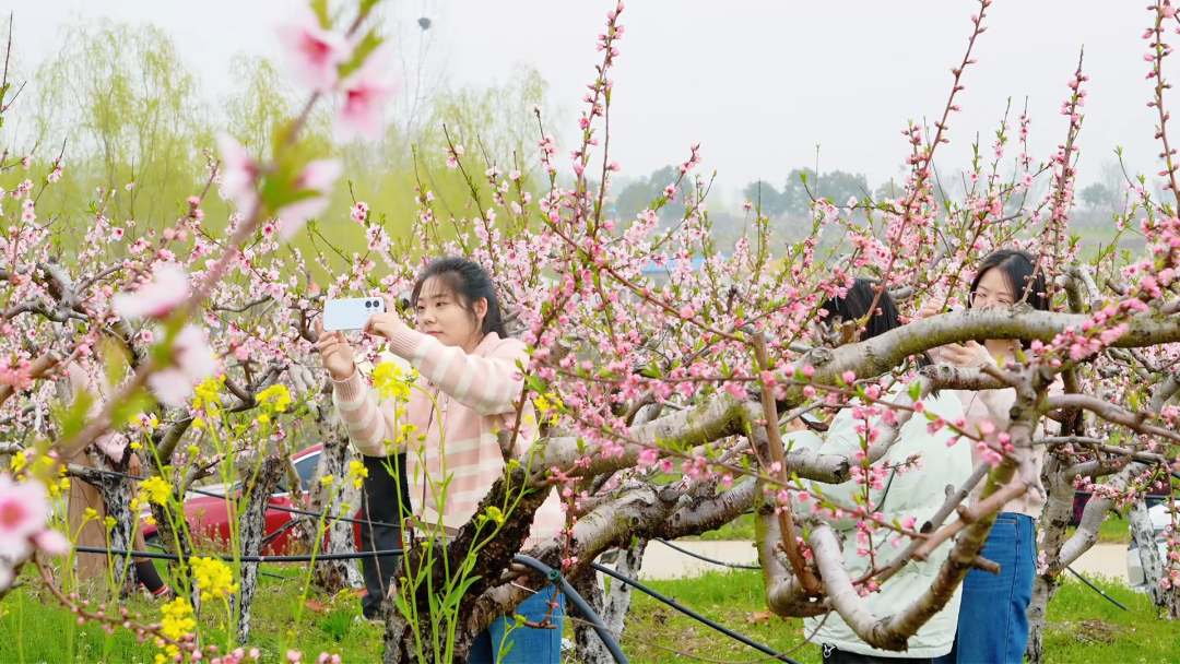 步入季店乡桃画山谷园区,漫山桃花、油菜花等花卉竞相开放,勾勒出醉人的春日画卷。园区内人头攒动,游客们或漫步花间步道拍照打卡、或围坐花田露营野餐,欢声笑语不绝于耳。