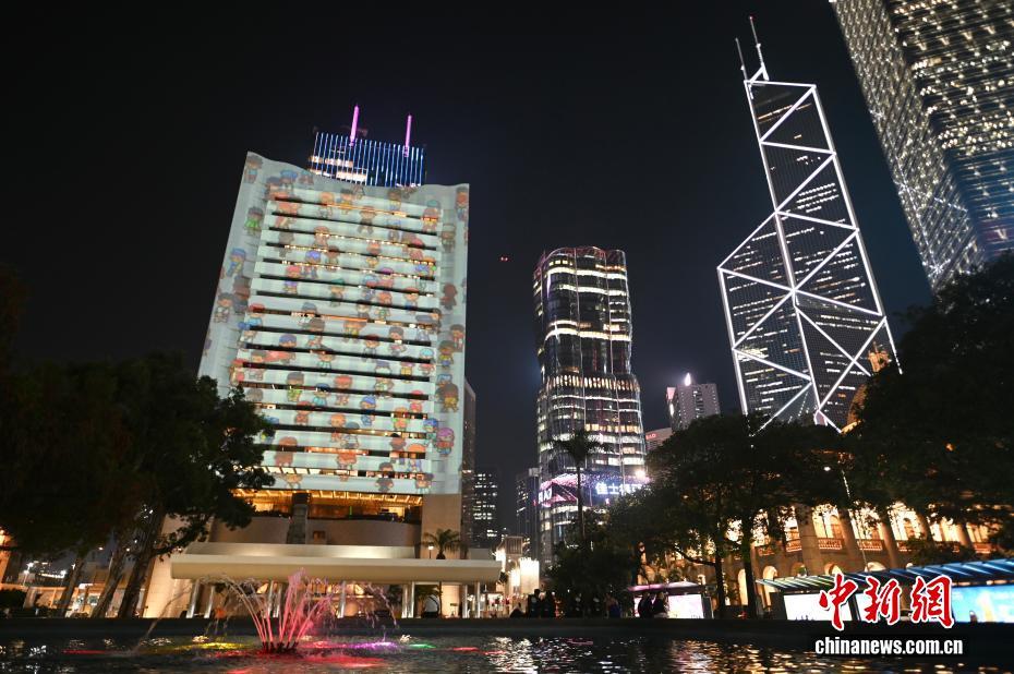 图为光影作品《DeePleThePeople》投影在香港会所大厦外墙上。中新网记者 李志华 摄