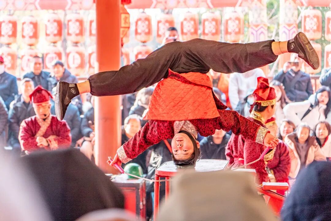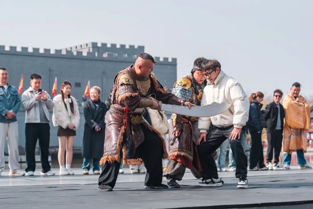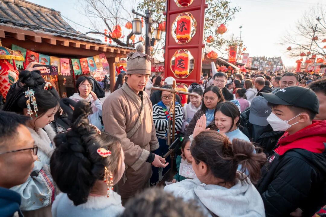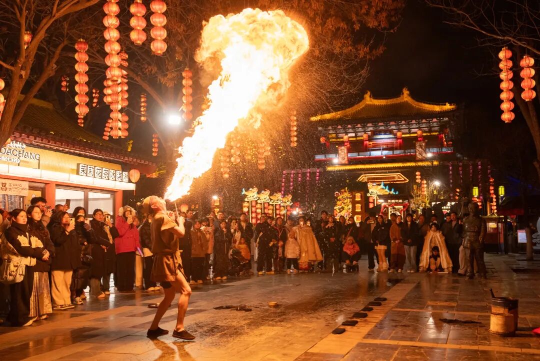 变脸互动秀、气功喷火、飞刀秀、扛竿等民俗绝活,让千年前的市井烟火鲜活重现。