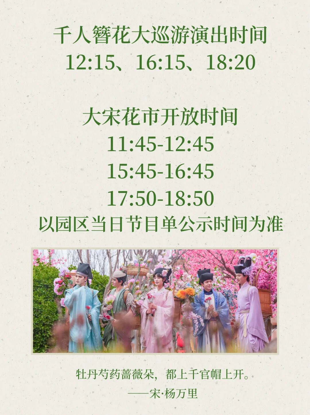 「大宋簪花游园会」欢乐刚刚开始!10000枝+繁花盛放、1000名+NPC沉浸互动、1000场+精彩好戏;簪花、赴宴、看戏、游园……清明假期倒计时4天!还等什么?这个清明假期,@你的踏青搭子,来清明上河园,赴一场日与夜的双重美好。