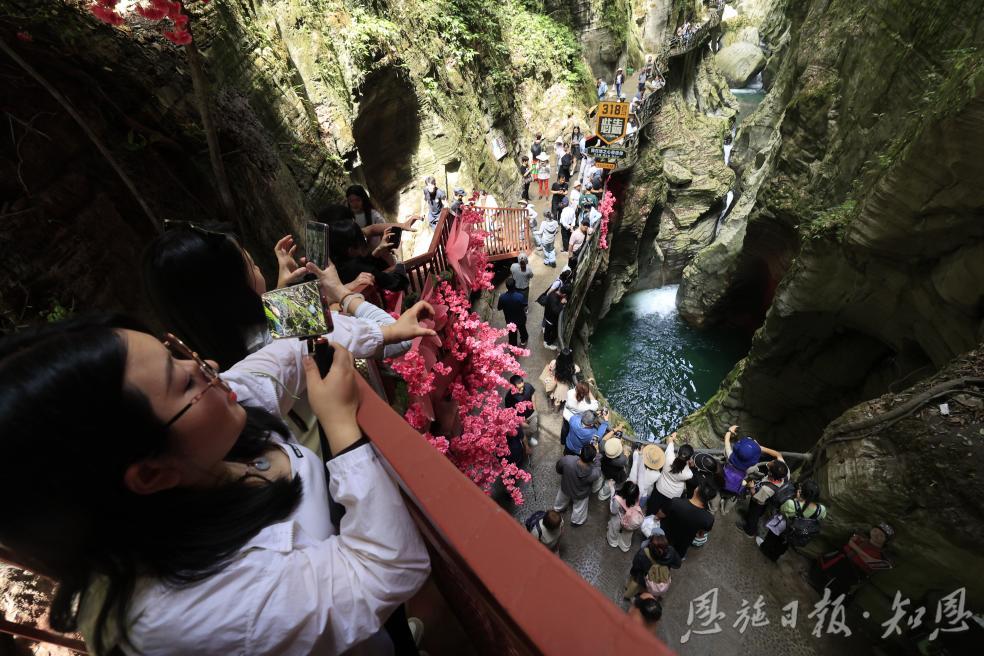 那里的春天,藏在北纬30度的峡谷深处。走在栈道上,抬头是刚抽新芽的崖壁,低头是奔流了亿万年的地心暗河。风从谷底吹上来,带着草木和水的味道,不冷不热,刚好是春天该有的样子。
