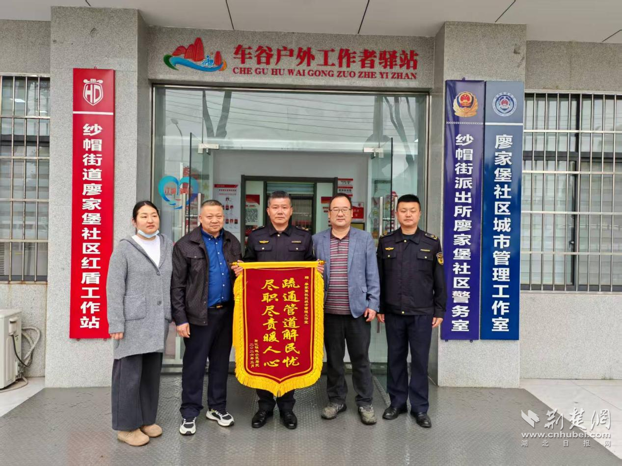值得一提的是,3月30日,纱帽街道综合执法中心与环卫中心还及时解决了南江明珠小区下水道堵塞难题,为居民排忧解难。3月31日,当执法队员燃气检查后返回廖家堡社区城管工作室时,南江明珠小区居民代表特意送来一面写有“尽职尽责暖人心 疏通管道解民忧”的锦旗,表达感激之情。