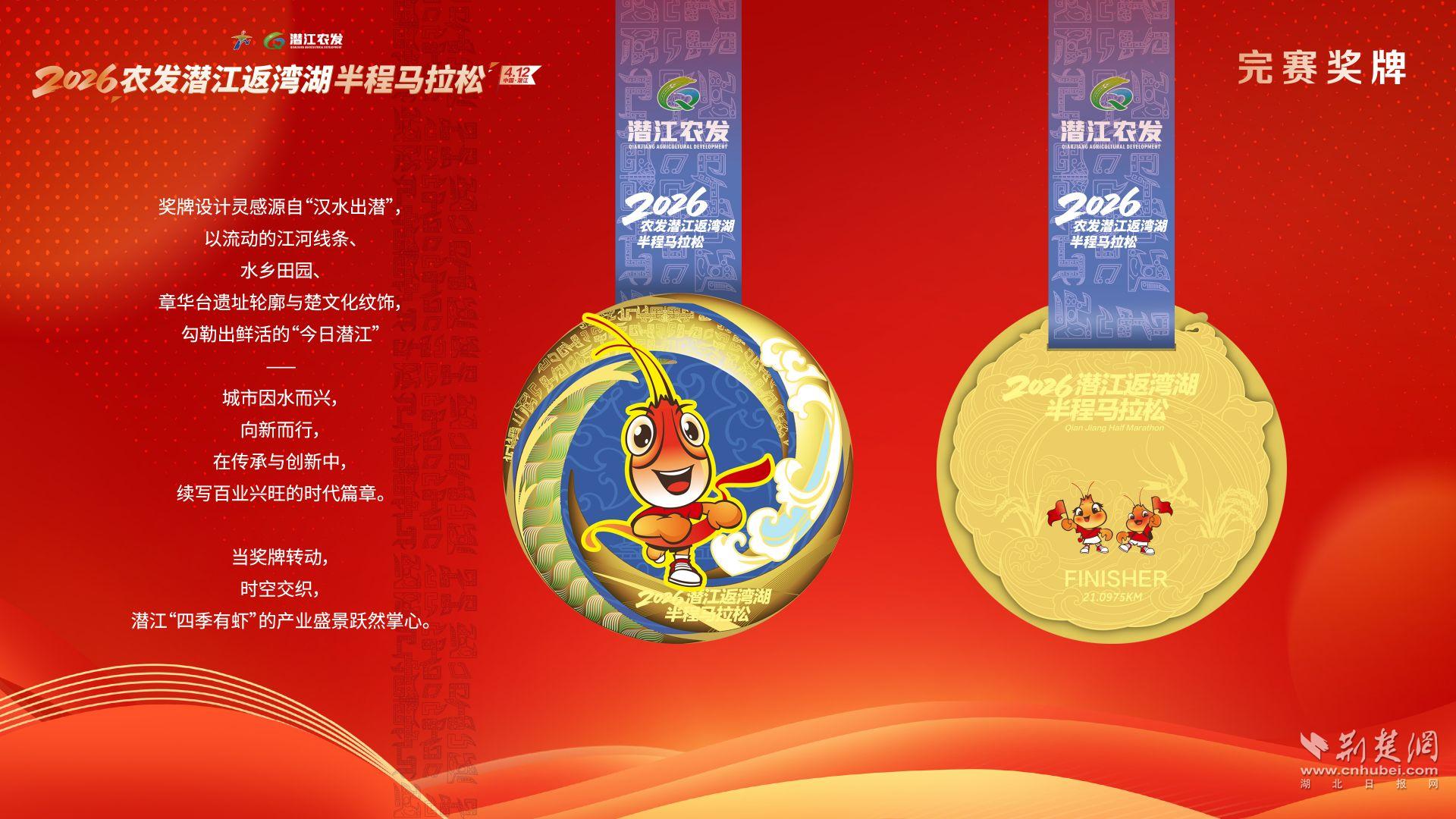 把文化记忆装进背包。赛事奖牌融入水乡田园、章华台、楚文化纹饰及Q萌龙虾等元素,完赛包搭配本土品牌小吃,终点设立潜江特色集市,跑者可现场品尝地道潜江龙虾、选购伴手礼,带走一份“潜江记忆”。
