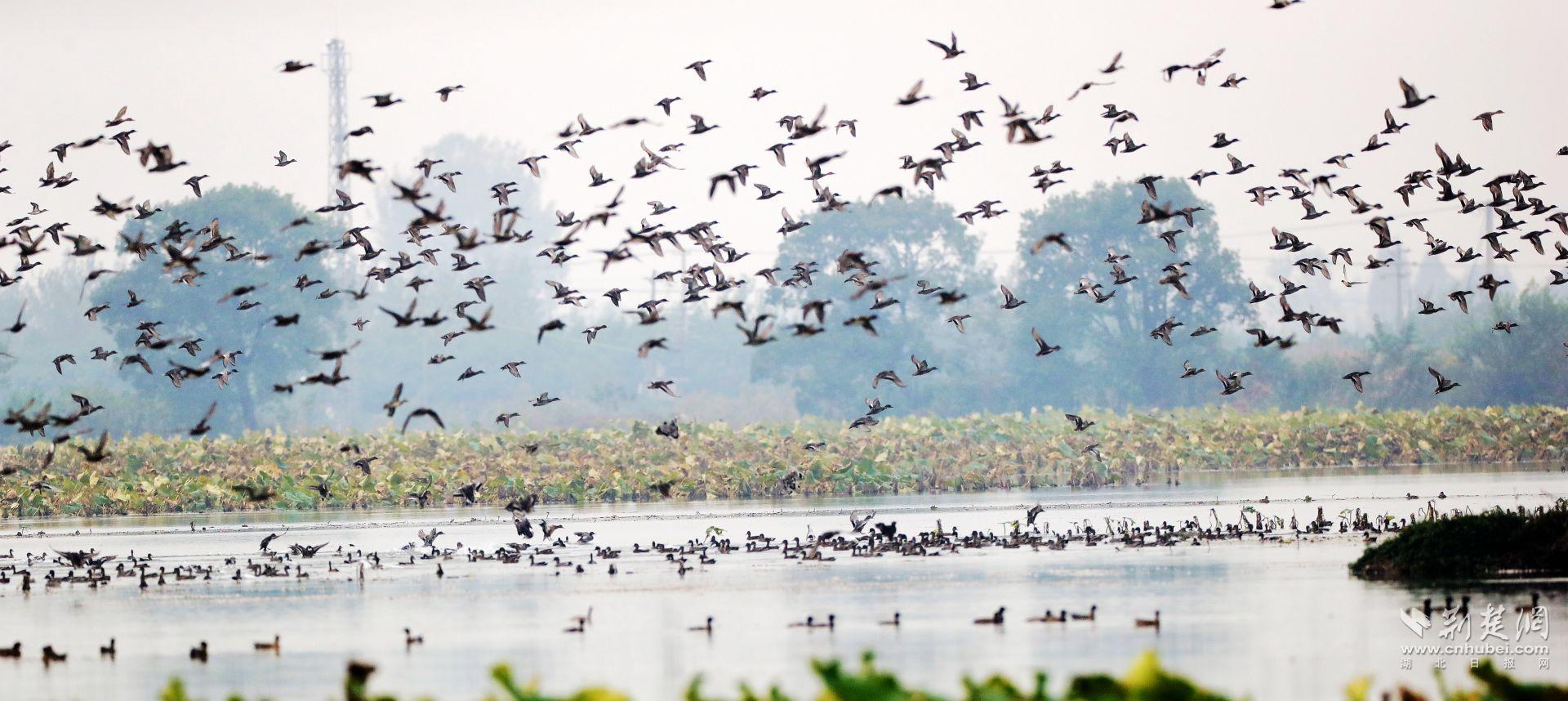 返湾湖是古云梦泽遗存、东亚-澳大利西亚候鸟迁飞路线上的重要驿站,湿地率高达96%,拥有347种植物、193种野生脊椎动物。国家一级保护、全球极危物种青头潜鸭连续三年在此栖息越冬,数量占全球种群总数的15%。