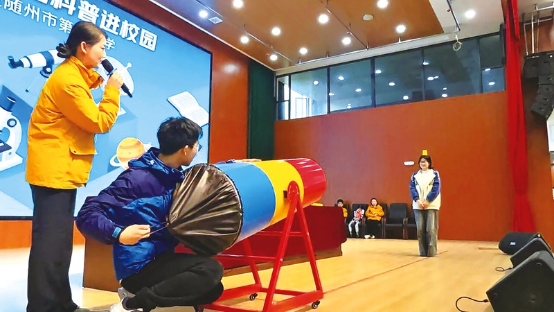 近日,随州二中联合随州科技馆开展“科普进校园・筑梦向科学”科普实验秀,趣味实验让学生零距离感受科学魅力,沉浸式体验“玩中学、做中悟”的科普之旅。