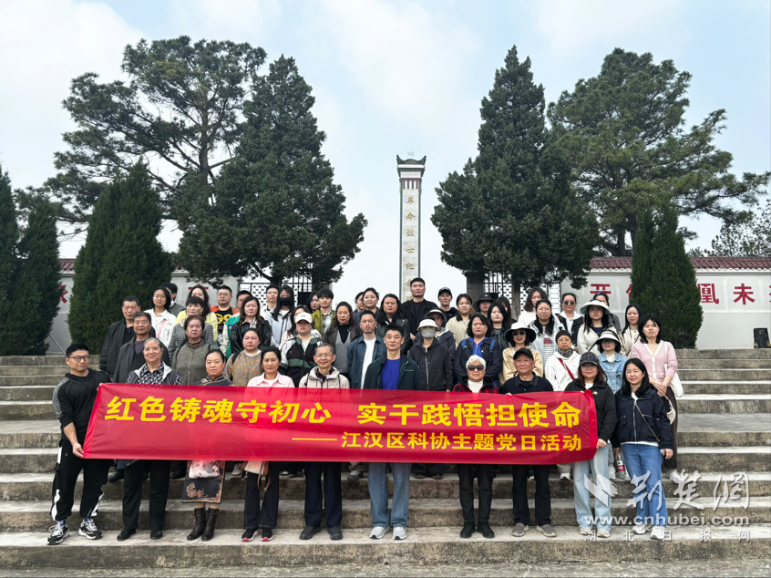 荆楚网(湖北日报网)讯(记者 何婧 通讯员 邱丰)4月1日,清明节来临之际,江汉区科协组织开展“红色铸魂守初心 实干践悟担使命”主题党日活动。区科协全体党员干部、退休老干部及相关单位、街道社区党员代表等50余人,走进新洲区凤凰镇,将红色教育、党性锤炼与科技科普、乡村实践有机融合,在沉浸式学习中凝聚奋进力量、强化使命担当。