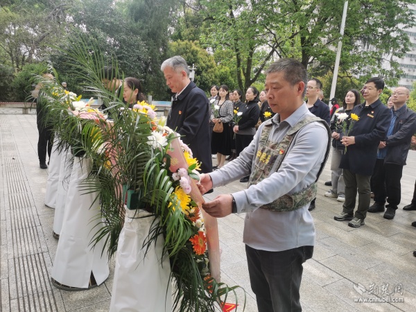 敬献花篮。 通讯员供图