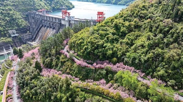 4月3日,黄龙大坝樱花长廊繁花似锦,粉白相间的樱花如云似霞、层层叠叠,在阳光映照下泛着温润的光泽。雄伟的黄龙大坝巍然矗立,澄澈的库水碧波荡漾,与漫山新绿相映成趣,构成一幅动静相宜的春日画卷,吸引各地游客纷至沓来。人们或驻足赏花,或拍照留念,用镜头定格美好春光,在山水繁花间尽享惬意休闲时光。记者刘昆摄