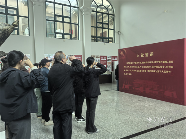 在湖北军民抗战博物馆,全体党员面向党旗庄严宣誓,重温入党誓词,坚定理想信念、强化责任担当。大家认真参观抗战藏品、历史照片和文献资料,通过一件件实物、一段段史实,接受了深刻的爱国主义教育和革命传统教育。