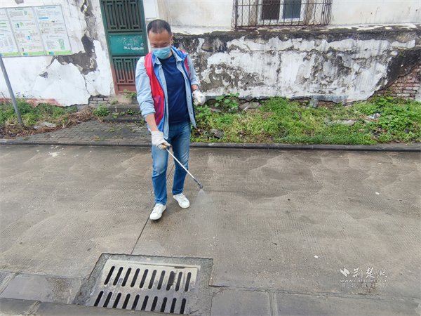 消杀人员对积水消退区域喷洒消毒。 通讯员供图