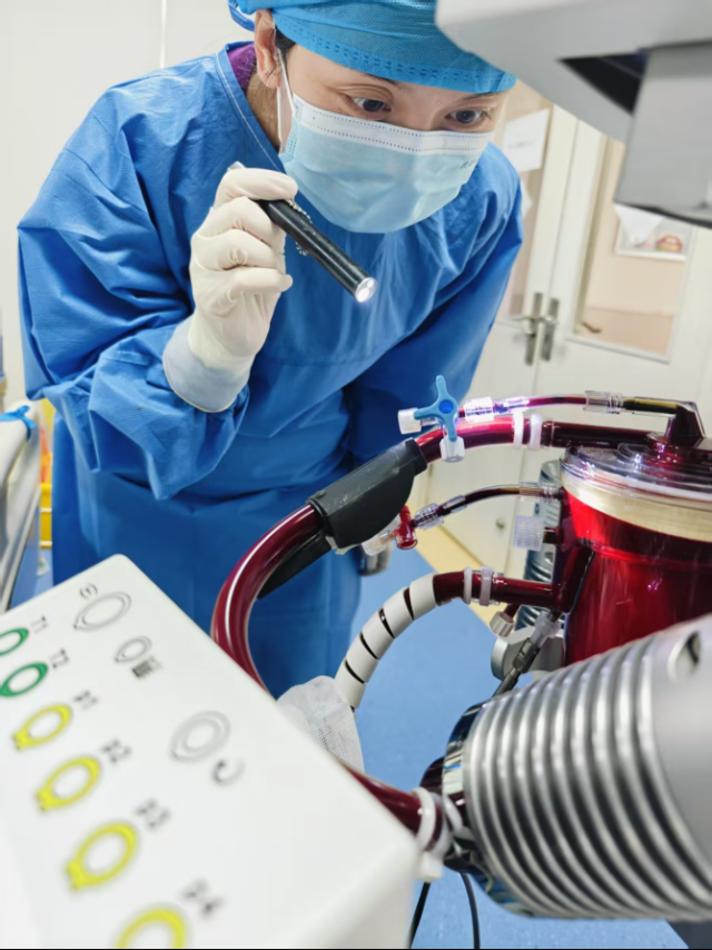 责任护士高志燕检查膜肺及管道