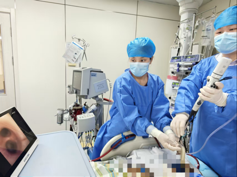 管床医生王世杰行床旁支气管镜检查及气道清理
