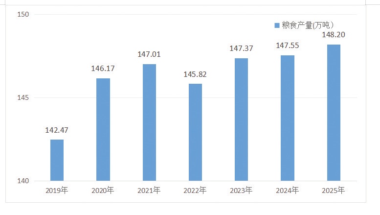 图2:2019-2025年随州粮食产量