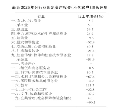 全年固定资产投资(不含农户)比上年增长5.0%。其中,民间投资增长8.7%。按登记注册类型划分,内资企业投资增长5.3%,港澳台投资增长76.9%,个体经营投资下降80.3%。按产业划分,第一产业投资增长12.9%,第二产业投资增长21.0%,第三产业投资下降8.2%。其中,房地产开发投资下降7.4%。商品房销售面积107.10万平方米,增长3.4%;商品房销售额51.57亿元,下降14.0%。