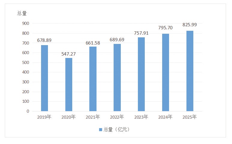 图3:2019-2025年随州社会消费品零售总额