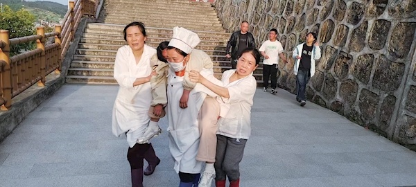本报讯 4月16日,竹溪县城关初级中学食堂内上演了一场惊心动魄的生命救援。该校食堂四名阿姨肖艳、伍艳、凌源、杨寿艳,在学生突发疾病昏迷、急救车尚未抵达的危急时刻,轮流背着学生从三楼餐厅狂奔至校门口。经医院全力救治,该学生已脱离生命危险,四名阿姨的义举迅速感动全城。