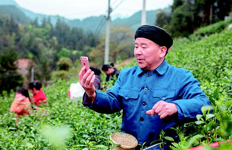 今年51岁的“农民文叔”黄文胜是个地道的农民,参加农民网红培训后,因为镜头感觉好,又会唱山歌,成了首批进驻淘宝直播的农民网红。4月2日,在利川市毛坝镇茶园里,一场采茶直播刚刚开启5分钟,数百位网友就涌进了文叔的直播间。