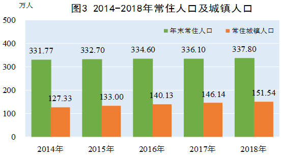 年末全州总人口402.04万人,其中,男性人口209.54万人,占总人口的52.1%;女性人口192.5万人,占总人口的47.9%。年末全州常住人口337.8万人,其中城镇常住人口151.54万人,占常住人口的比重(常住人口城镇化率)为44.86%,比上年提高1.38个百分点。