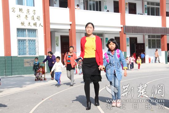 张敏忠到学校接孩子 通讯员唐旻摄