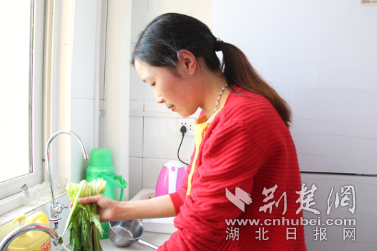 张敏忠在新房子里做饭 通讯员唐旻摄