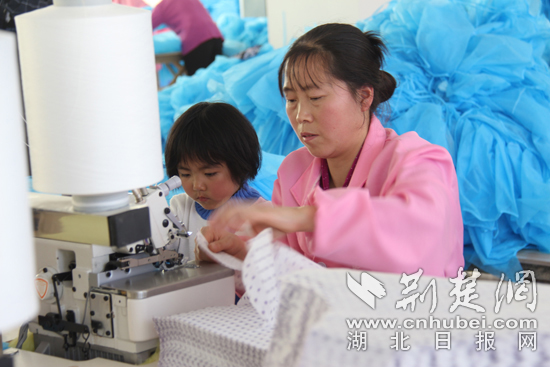 荆楚网客户端—荆楚网消息(通讯员唐旻 谭大友 黄廷兵)4月18日一大早,建始县长梁镇江家垭村贫困户张敏忠,从家里把孩子送到学校后,转身又到恩施建诚防护用品有限责任公司上班,开启了她新一天的生活。