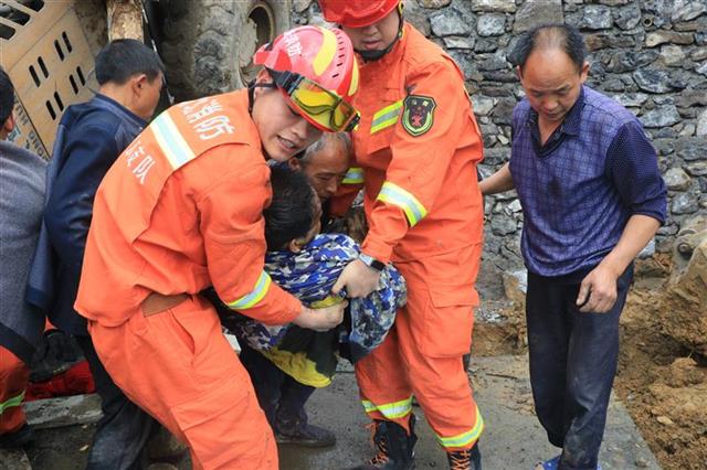 为扩大救援空间,只能对驾驶室进行破拆以打开救援作业面。但考虑到破拆过程中铲车可能会再次下沉,给被困人员造成二次伤害。于是,指挥员立即与当地民警和地方群众协调调派一辆挖机对事故铲车进行吊升同时用木柱对铲车进行固定。在确保铲车不会再次发生滑动的情况下,救援行动再次展开,由一名救援人员进入驾驶室内利用液压剪扩器对司机右脚脚踝的位置进行了扩张,这时,男子已被困2小时,其神志逐渐迷失,昏昏欲睡。