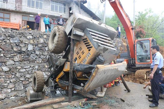 21日8时40分,恩施市清江消防中队接到群众报警称:恩施市屯堡乡鸦丘坪村一铲车发生侧翻,司机被困驾驶室内,情况十分紧急。接到报警后,清江中队立即出动一辆皮卡车,6名消防救援人员火速赶往现场救援。消防救援人员到场后发现,铲车呈120度斜靠在沟内的民房上,车体大部分暴露在屋顶上,驾驶室由于挤压已严重变形,司机下半身被困驾驶室内无法动弹,由于现场救援空间狭小,无齿锯、液压破拆工具破拆面不足,救援工作一时没有取得有效进展。