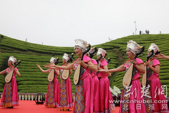 云雾山中出好茶,茶商们一行先后走进走马镇红罗沟村茶园基地及有“世界茶谷”之称的木耳山万亩生态茶园。只见大小山头,一垄垄齐头的茶树上,嫩芽缀满枝头,满目青翠,茶商们忍不住和茶农们一起体验一把采茶乐趣。不时有采茶山歌在山里回荡,余音袅袅,让人心旷神怡。感到累时,喝上一口热情土家人奉上的清醇红绿茶,然后观赏鹤峰满堂音、围鼓等民族节目,让茶商们感受到非遗与茶文化的融合之美。