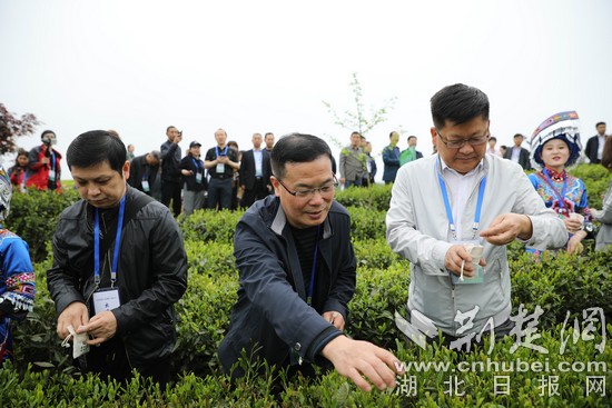 参观茶园基地,品非遗茶文化,万里茶道茶源地揭牌,茶叶采购签约,举办专家论坛,茶企交流对接。当天,“万里茶道茶源地?湖北鹤峰第二届茶商大会”在走马镇盛大开幕,国内外茶行业组织、知名茶叶专家及茶企茶商代表等300余人云集,共话茶业发展,共谋茶企未来。