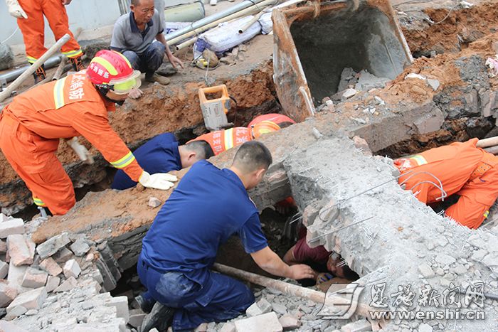本网讯(通讯员 唐清恒)6月15日18时09分,湖北建始县下坝大道某小区正在施工过程中围墙突然坍塌,将一名施工人员压在墙下,双腿被死死卡在倒塌的砖块中,由于挤压严重,被困人员不停的挣扎,表情十分痛苦,救援刻不容缓。
